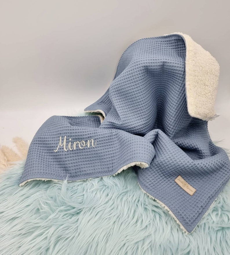 Personalized Newborn Blanket – Soft Waffle Texture & Teddy Fur