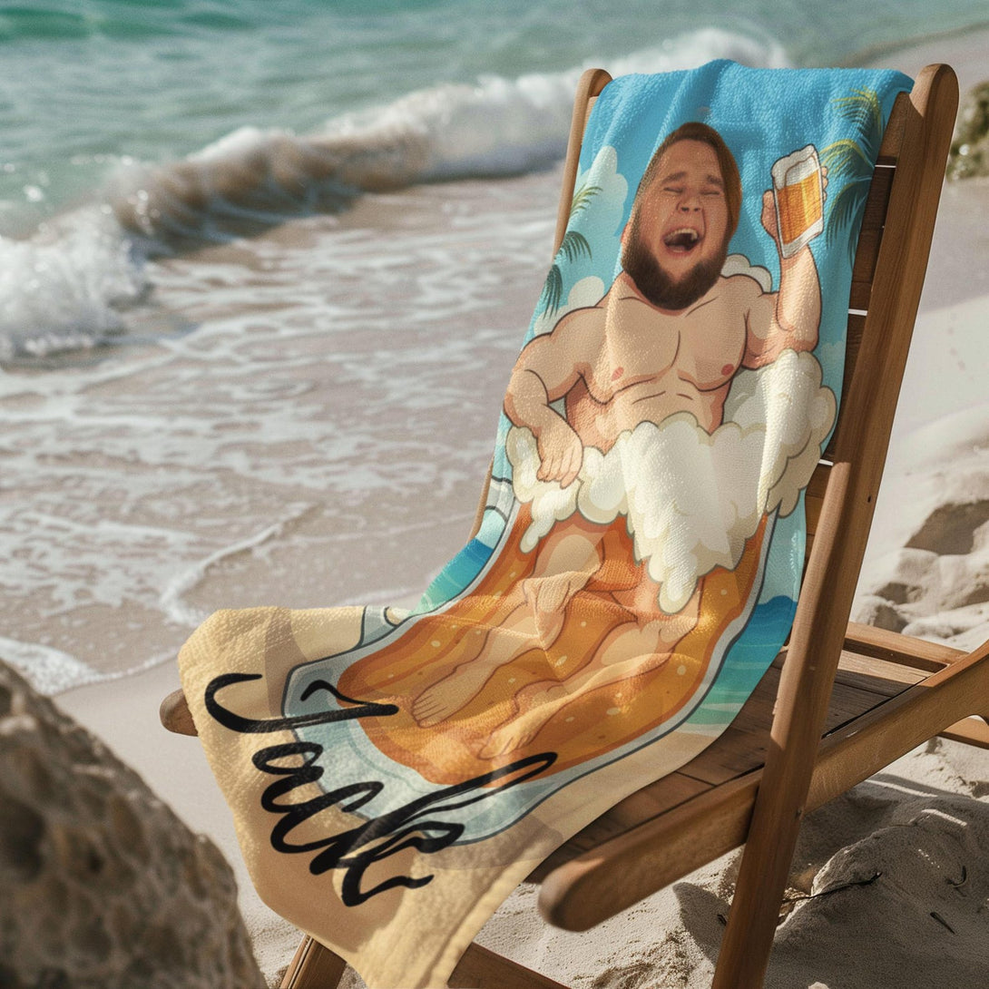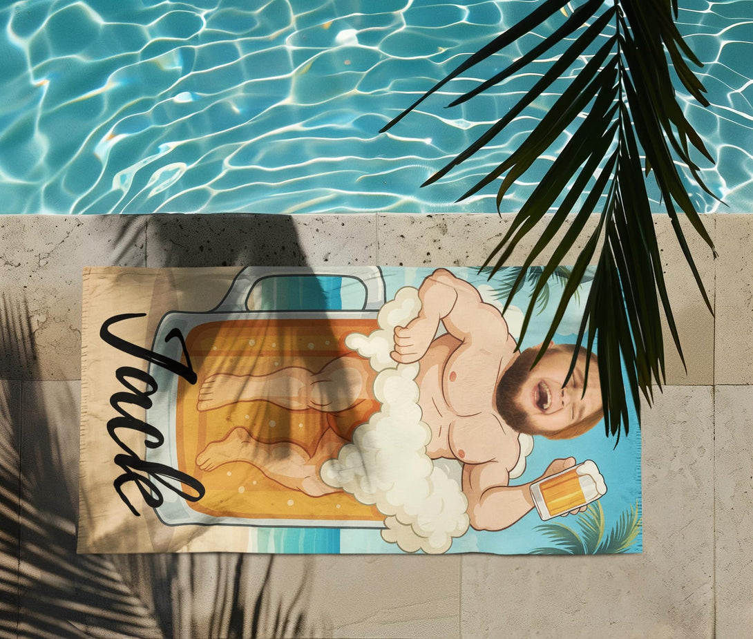 Beer Mug Beach Towel – Custom Face & Name Gift