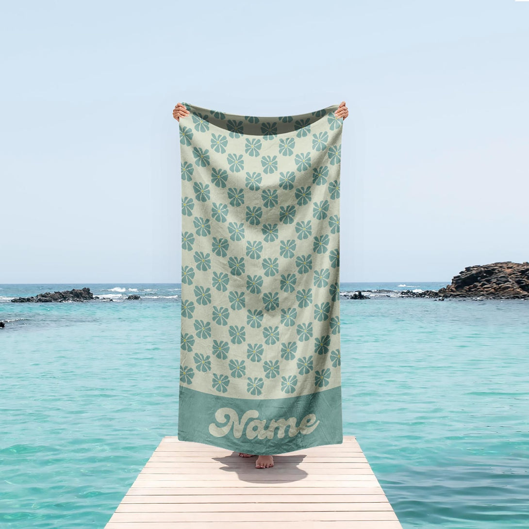 Retro Daisy Beach Towel – Custom Boho Name Gift