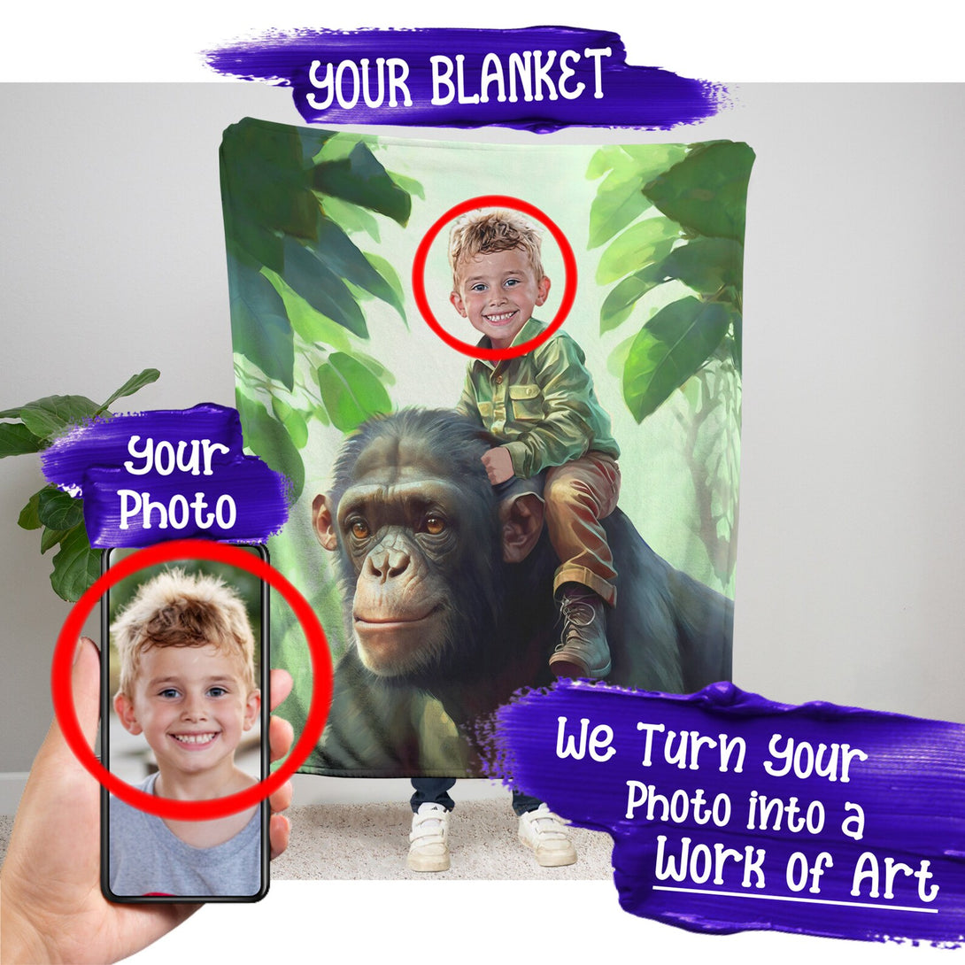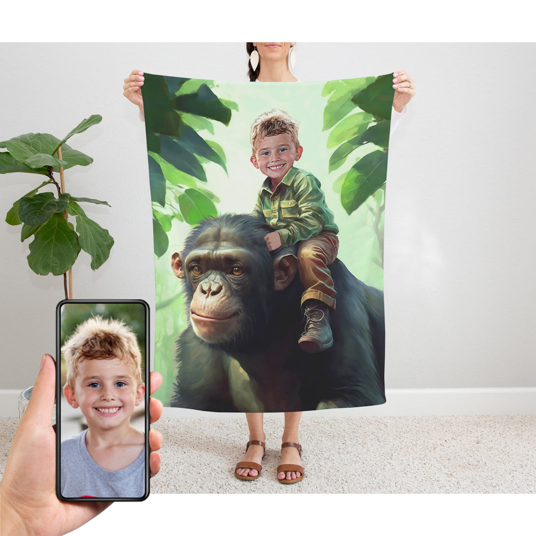 Monkey Plush Blanket – Personalized Gift for Kids